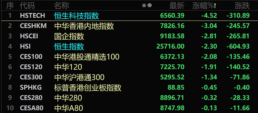 9月9日,港股市場在經(jīng)過前期的觸底震蕩回升后出現(xiàn)回調(diào),截至收盤,港股主要指數(shù)普遍收跌,其中,恒生指數(shù)跌2.3%,報25716點,恒生科技指數(shù)回調(diào)較大,跌4.52%,報6560.39點。