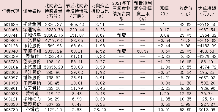 表:節(jié)后獲北向資金增持的汽車股一覽