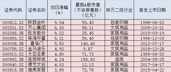 從當(dāng)日市場表現(xiàn)來看,中銳股份收獲一字漲停板,齊心集團、松發(fā)股份、珠海中富、喜臨門等個股漲幅均超過5%。