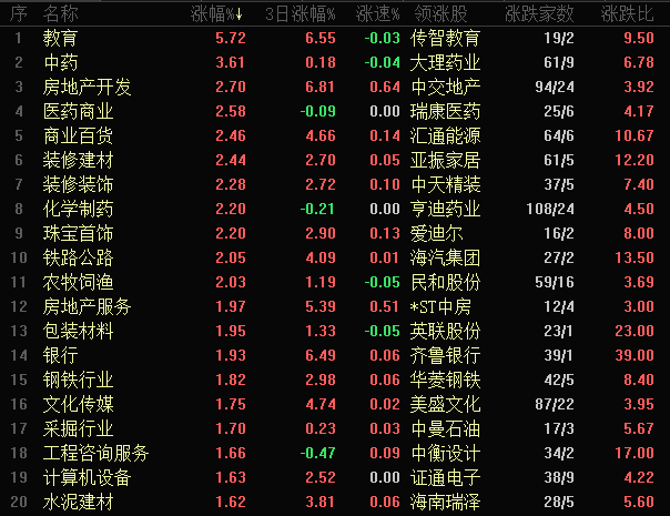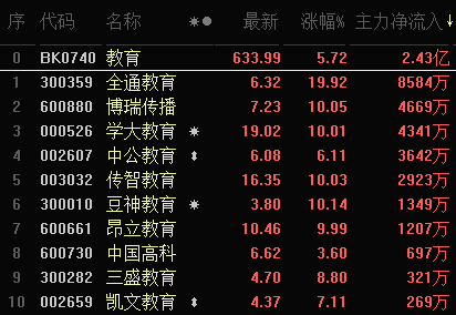 截至午間收盤,教育行業(yè)領(lǐng)漲,漲幅達(dá)5.72%,板塊中有5只個股漲停。