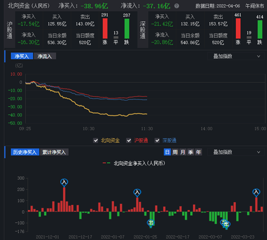 從資金面來看,4月6日上午,北向資金凈賣出金額達(dá)38.96億元。兩融資金方面,截至4月1日,滬深兩市兩融余額為16605.52億元,較前一交易日減少122.87億元。