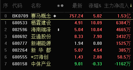 概念板塊方面,早盤賽馬板塊表現(xiàn)強(qiáng)勁,跳空高開并創(chuàng)出近期高點,截至午間收盤,早盤上漲5.02%。