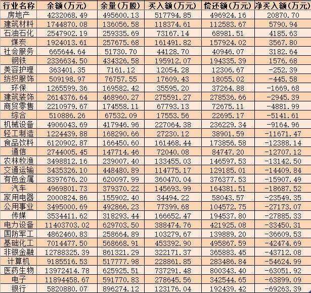 表:4月8日申萬一級行業(yè)兩融交易情況: