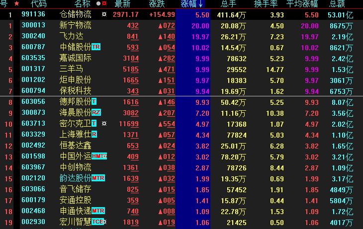 具體來看,4月11日上午,倉儲物流板塊異軍突起,表現(xiàn)強勁。截至上午收盤,板塊漲幅居首達5.5%。7只概念股集體漲停,其中,新寧物流、飛力達等2只個股均達20CM漲停。