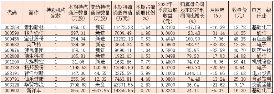 表:今年一季度獲養(yǎng)老金持倉(cāng)的個(gè)股一覽