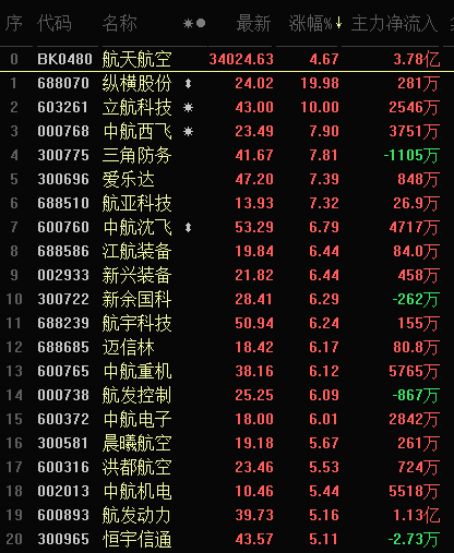 具體來看,截至5月5日11:30,航天航空行業(yè)中有多達22只個股漲幅超5%,其中,縱橫股份和立航科技封漲停板。
