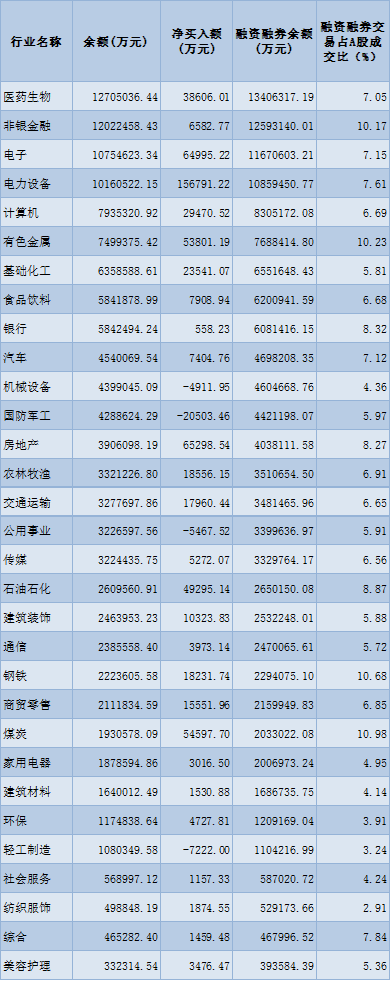 表:5月5日申萬一級行業(yè)兩融交易情況:
