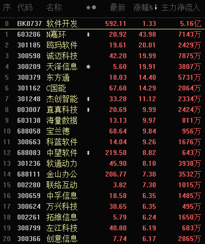 具體來看,截至5月6日11:30,軟件開發(fā)行業(yè)中有5只個股封漲停,多達21只個股漲幅超5%。