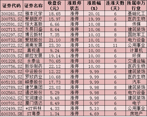 表:連續(xù)上漲超6天且今日漲停個股情況: