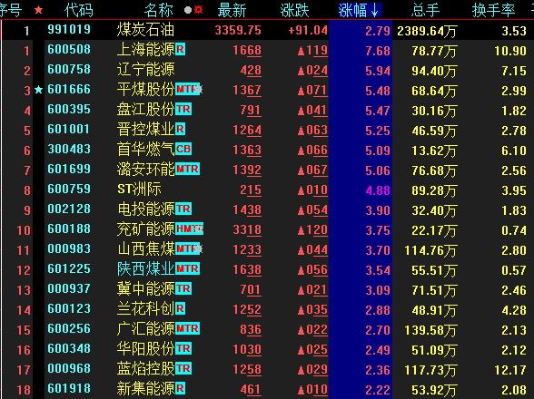 5月11日,煤炭石油板塊表現(xiàn)突出,漲幅達2.79%。其中,上海能源漲幅居首達7.68%。