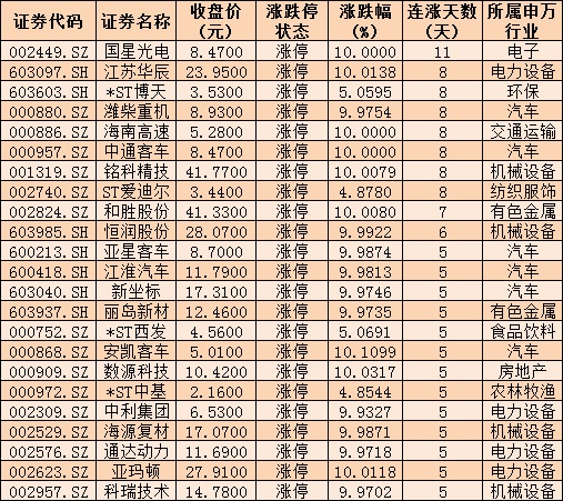 表:連續(xù)5日上漲且今日漲停股情況: