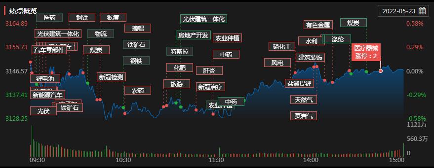 具體來看,5月23日,汽車整車板塊領(lǐng)漲,中通客車、亞星客車等個(gè)股多只個(gè)股漲停;黑色金屬、化肥、轉(zhuǎn)基因、鹽湖提鋰等板塊表現(xiàn)活躍;露營經(jīng)濟(jì)板塊領(lǐng)跌,酒店及餐飲、租售同權(quán)、機(jī)場航運(yùn)、物業(yè)管理等板塊跌幅居前。