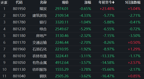 從申萬一級(jí)行業(yè)看,煤炭以-0.65%漲幅居首,盡管今天收盤回落,但盤中一度曾漲近3%,今年以來更是在23.48%的漲幅居申萬一級(jí)行業(yè)首位。