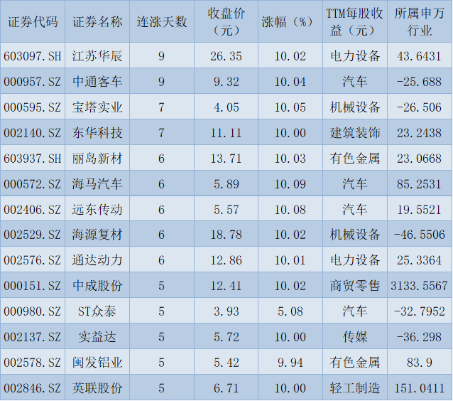 表:連續(xù)上漲5天且今日收盤漲停股一覽