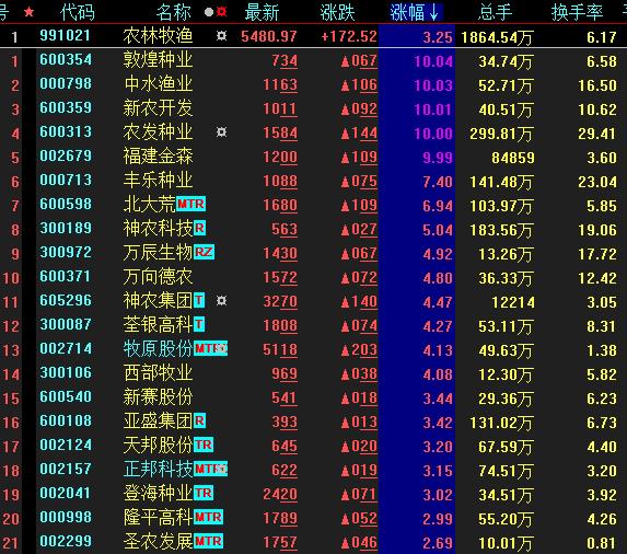農(nóng)林牧漁板塊領(lǐng)漲 5股集體漲停