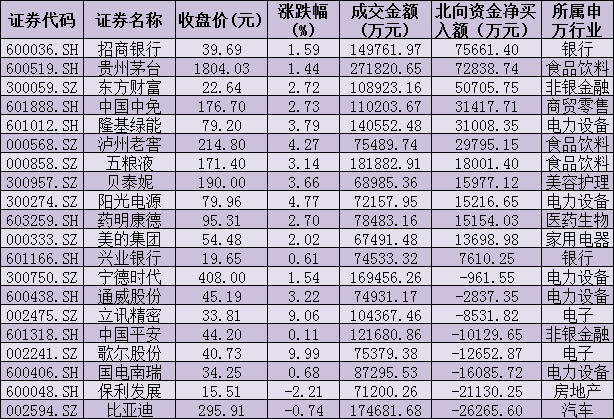 值得關(guān)注的是,北向資金今日呈凈流入態(tài)勢(shì),全天凈買入138.65億元。其中,招商銀行、貴州茅臺(tái)、東方財(cái)富等3只個(gè)股,凈買入金額均超5億元。