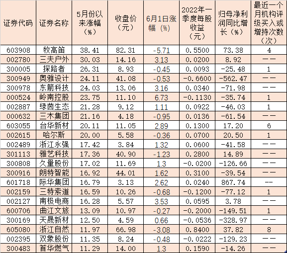 表:5月份以來漲幅超10%的露營經(jīng)濟(jì)概念股