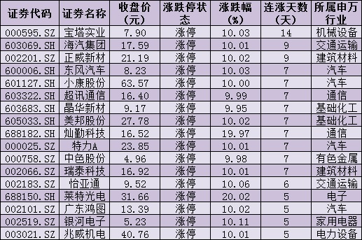 表:連續(xù)5日上漲且今日漲停股情況: