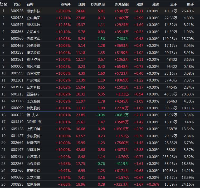 28只汽車股集體漲停