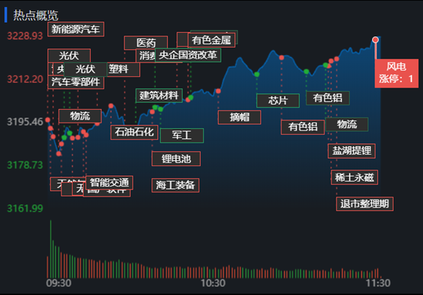 6月6日,A股三大指數(shù)早盤震蕩走高。截至上午11:30,上證指數(shù)漲1.05%,報(bào)3228.93點(diǎn);深證成指漲2.52%,報(bào)11921.50點(diǎn),創(chuàng)業(yè)板指漲4.05%;滬深兩市合計(jì)成交額6955.2億元;總體來(lái)看,A股市場(chǎng)個(gè)股漲多跌少,上漲個(gè)股為3724只,下跌個(gè)股920只。