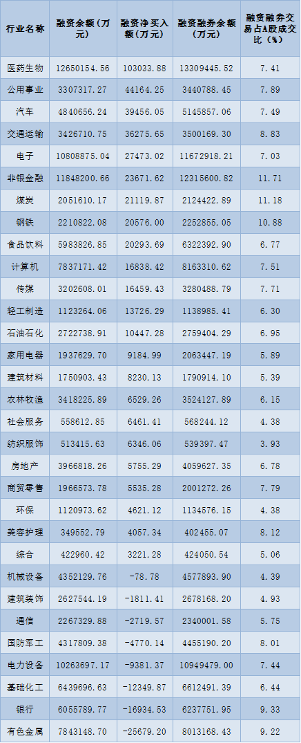 表:6月7日申萬一級行業(yè)兩融交易情況: