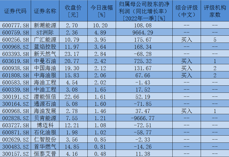 表:6月8日,油氣開采及服務板塊實現(xiàn)上漲個股一覽