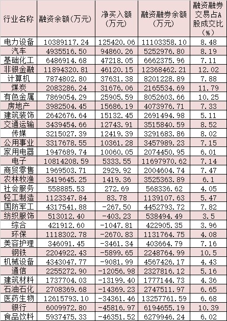 表:6月8日申萬一級行業(yè)兩融交易情況: