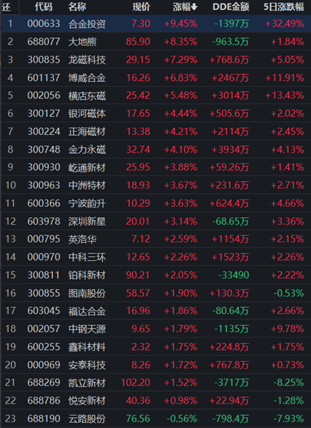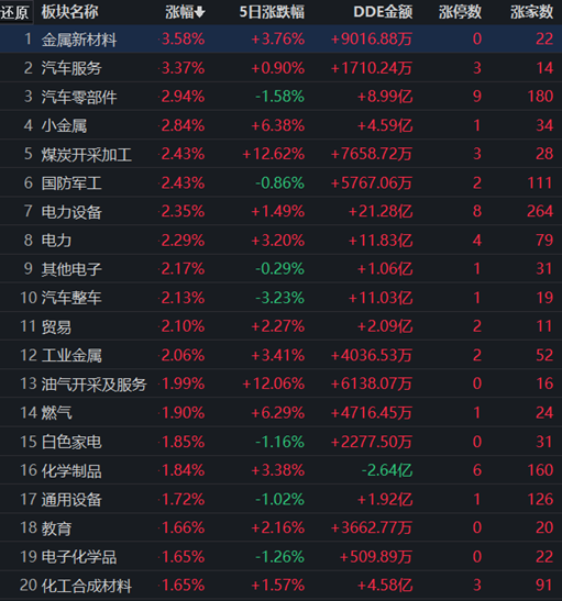 從領(lǐng)漲的金屬新材料行業(yè)看,截至6月10日11:30,全行業(yè)的23只個股中,有22只上漲,其中,有5只漲幅超5%。