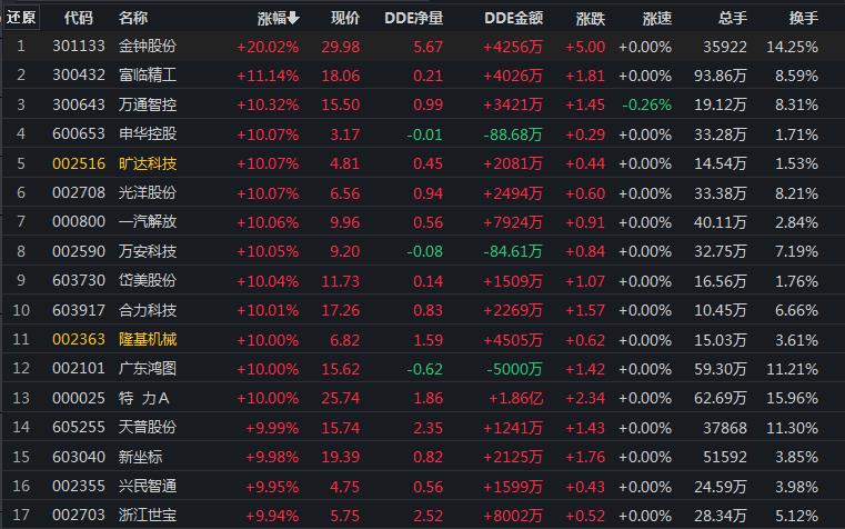 6月13日,汽車行業(yè)漲幅居首達2%,18只汽車股集體漲停,其中,金鐘股份20CM漲停。