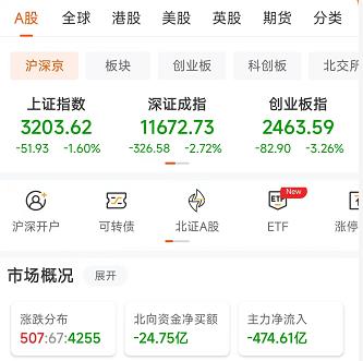 6月14日上午,A股三大指數(shù)集體低開低走,創(chuàng)業(yè)板指數(shù)跌超3%。截至上午11:30,上證指數(shù)跌1.6%,報(bào)3203.62點(diǎn);深證成指跌2.72%,報(bào)11672.73點(diǎn),創(chuàng)業(yè)板指跌3.26%,報(bào)2463.59點(diǎn);滬深兩市合計(jì)成交額6677億元;總體來看,A股市場個(gè)股跌多漲少,上漲個(gè)股為507只,下跌個(gè)股4255只。