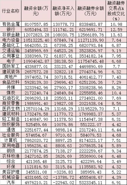 表:6月13日申萬一級(jí)行業(yè)兩融交易情況: