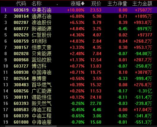 從領(lǐng)漲的油氣開采及服務(wù)行業(yè)看,截至6月14日11:30,行業(yè)的21只個(gè)股中,中曼石油漲停,準(zhǔn)油股份、通源石油等2只個(gè)股漲幅均超6%。