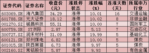 漲停板方面,6月14日,有78只個(gè)股漲停,其中,有8只漲停股,股價(jià)已連續(xù)上漲5個(gè)交易日以上。從行業(yè)方面看,汽車(chē)和基礎(chǔ)化工等2行業(yè)漲停股最多,均達(dá)13只,緊隨其后的是非銀金融行業(yè),漲停股數(shù)量為6只。