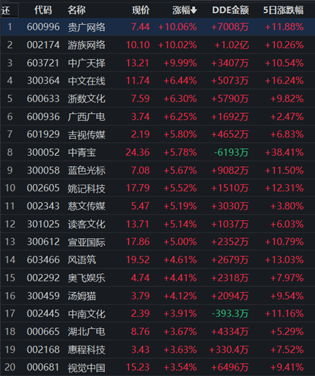 6月21日,傳媒行業(yè)漲幅居首,達1.09%。其中,貴廣網(wǎng)絡、游族網(wǎng)絡和中廣天擇等3只個股集體漲停。