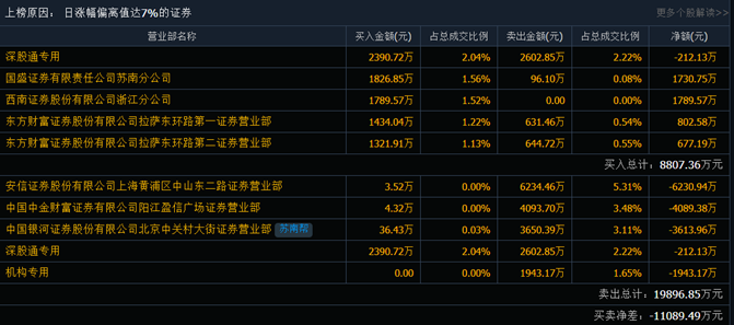盤后龍虎榜數(shù)據(jù)顯示,深股通專用席位買入2390.72萬元并賣出2602.85萬元,1家機構專用席位凈賣出1943.17萬元。