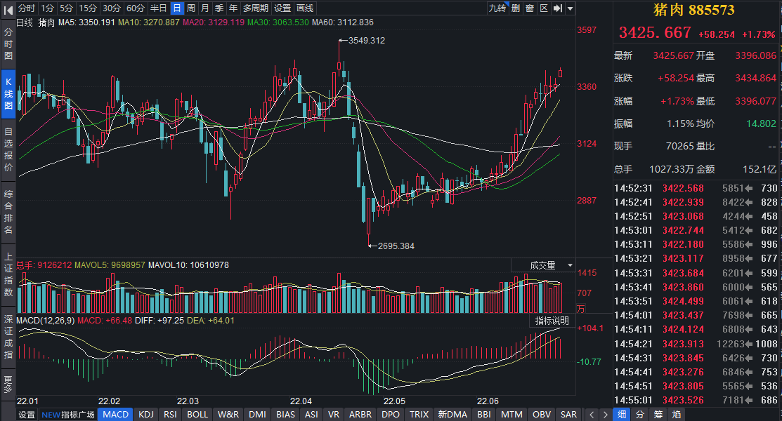 “生豬5月份以來出欄量持續(xù)下降,疊加即將進(jìn)入豬肉消費(fèi)旺季,在題材、資金等多重因素作用下今日生豬期貨價(jià)格大幅上漲。”東吳期貨農(nóng)產(chǎn)品研究員郭大順對(duì)《證券日報(bào)》記者說。