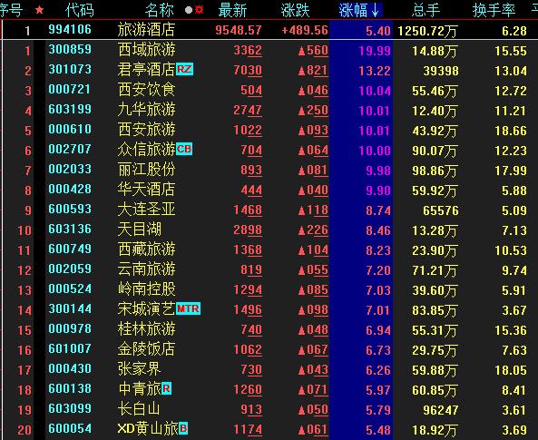 6月28日,從熱門板塊來看,旅游酒店板塊漲幅居首,達(dá)5.4%。其中,7只個(gè)股漲停,西域旅游20CM漲停。