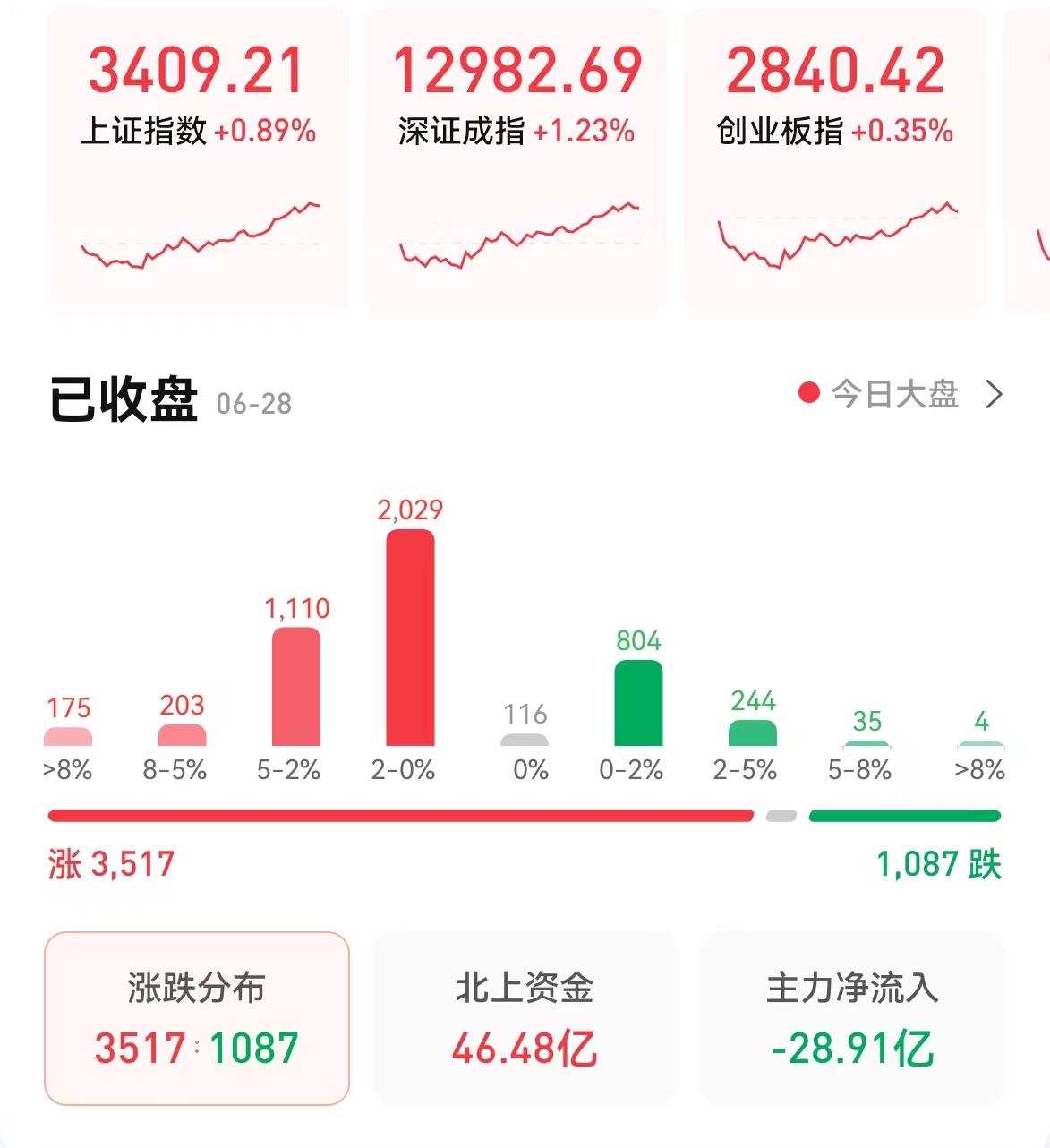 6月28日,A股三大指數(shù)全線飄紅,上證指數(shù)走出日線四連陽(yáng),成功站上3400點(diǎn)整數(shù)關(guān)口。兩市合計(jì)成交12213億元,連續(xù)第4個(gè)交易日突破萬億元。北向資金凈買入超46億元。市場(chǎng)熱點(diǎn)紛呈,電子、社會(huì)服務(wù)、交通運(yùn)輸、煤炭等行業(yè)漲幅居前,備受矚目。經(jīng)過2個(gè)月的反彈,A股的上漲行情能否延續(xù)呢?
