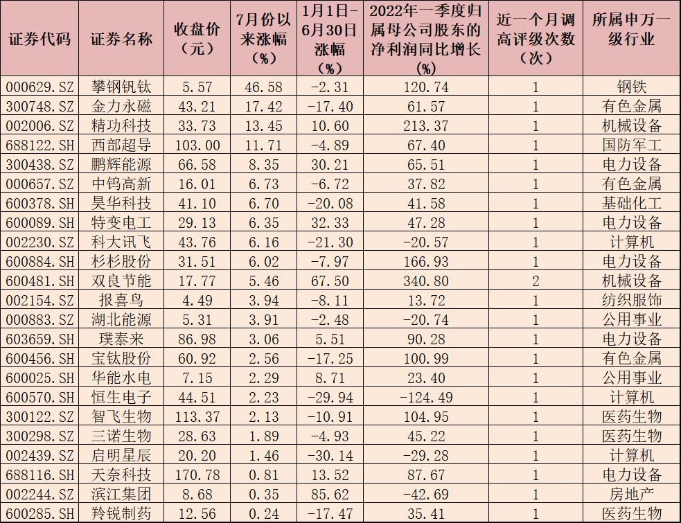 表:7月份以來上漲的獲調(diào)高評級股一覽