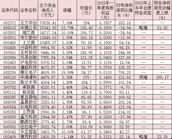 表:7月6日主力資金凈流入超2000萬元的半導(dǎo)體概念股