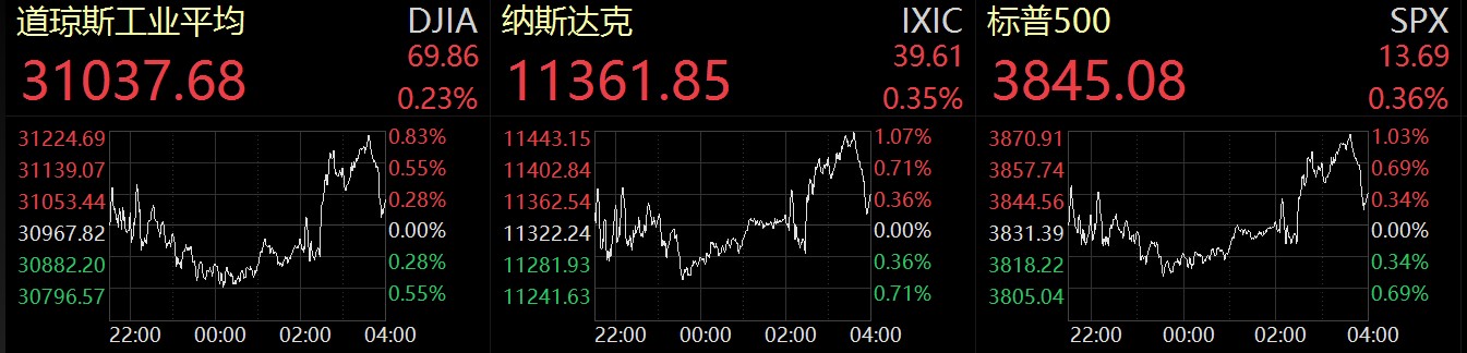市場(chǎng)表現(xiàn)來(lái)看,當(dāng)?shù)貢r(shí)間7月6日,美股三大指數(shù)尾盤(pán)沖高后出現(xiàn)回落,截至收盤(pán),美股三大指數(shù)集體收漲,道瓊斯指數(shù)漲0.23%,報(bào)31037.68點(diǎn);標(biāo)普500指數(shù)漲0.36%,報(bào)3845.08點(diǎn);納斯達(dá)克指數(shù)漲0.35%,報(bào)11361.85點(diǎn)。