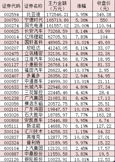 表:7月7日主力資金凈流入超1億元的新能源汽車概念股