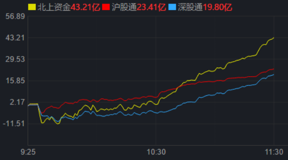 從資金面來看,7月18日上午,北向資金凈買入金額達43.21億元。