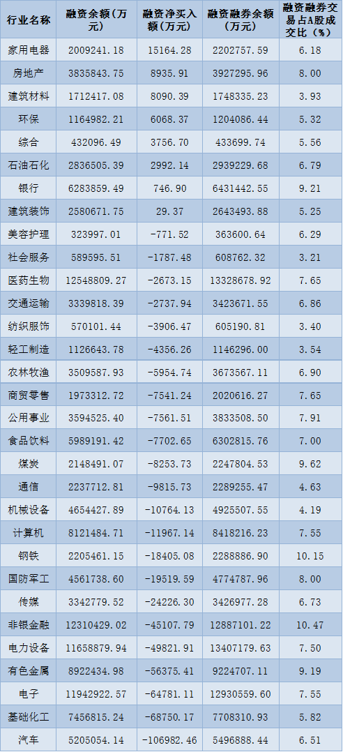 表:7月15日申萬一級行業(yè)兩融交易情況: