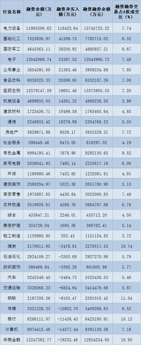 表:7月19日申萬(wàn)一級(jí)行業(yè)兩融交易情況: