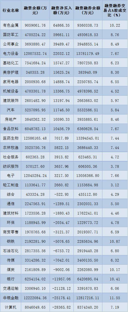 表:7月20日申萬一級行業(yè)兩融交易情況:
