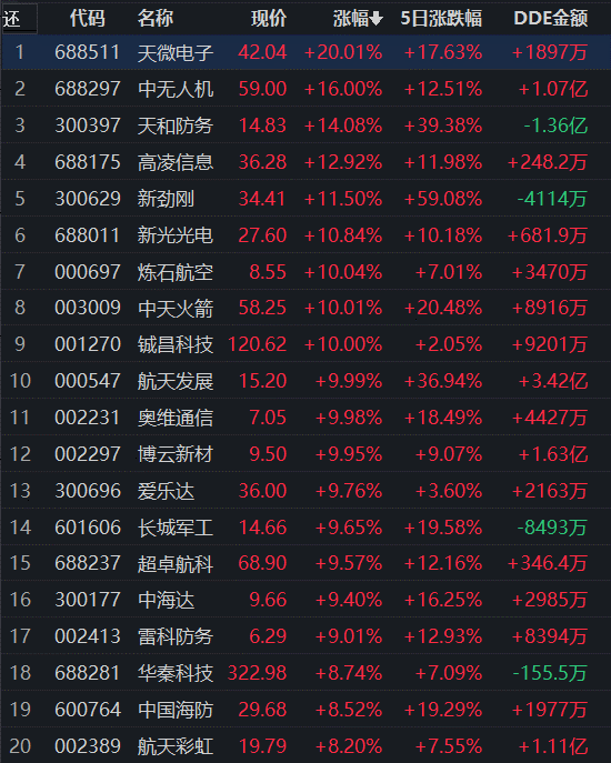 從漲幅居首的國防軍工行業(yè)看,截至8月3日11:30,行業(yè)交易中的125只個股有119只上漲,其中,有7只個股漲停,另有52只個股漲幅超5%。從資金流向看,國防軍工行業(yè)今天上午大單資金凈流入額達(dá)26.53億元,居行業(yè)第1位。