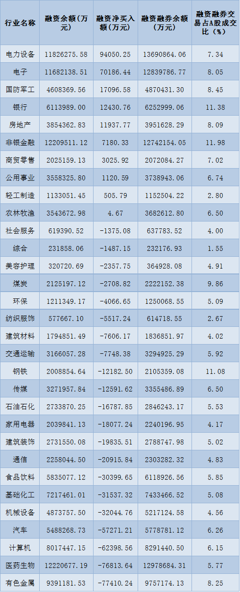 表:8月3日申萬一級行業(yè)兩融交易情況: