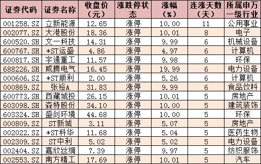 表:今日漲停且連漲5日以上的個股情況: