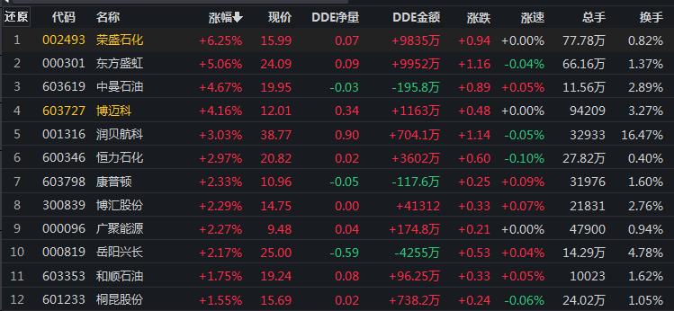 8月10日,石油石化行業(yè)漲幅居首達1.41%。其中,榮盛石化、東方盛虹等個股漲幅居前,均超5%。